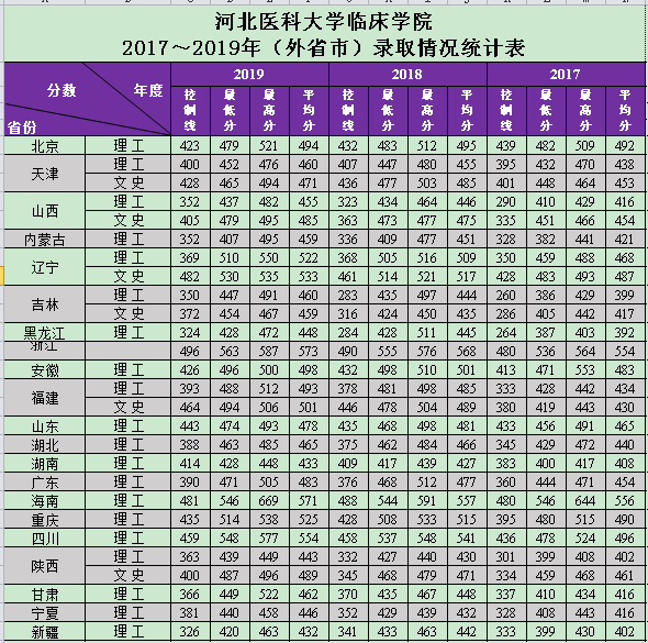 大发快三平台 2017-2019年各专业控制线、投档线、录取线统计表(外省市)