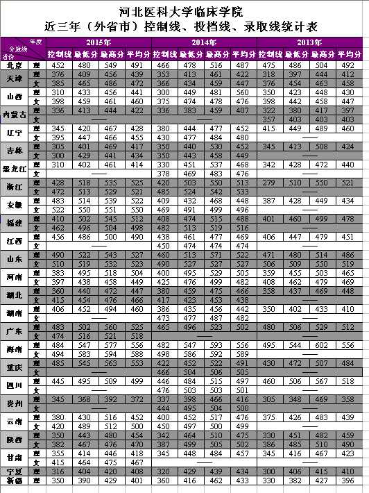 大发快三平台 2013-2015年(外省市)控制线、投档线、录取线统计表