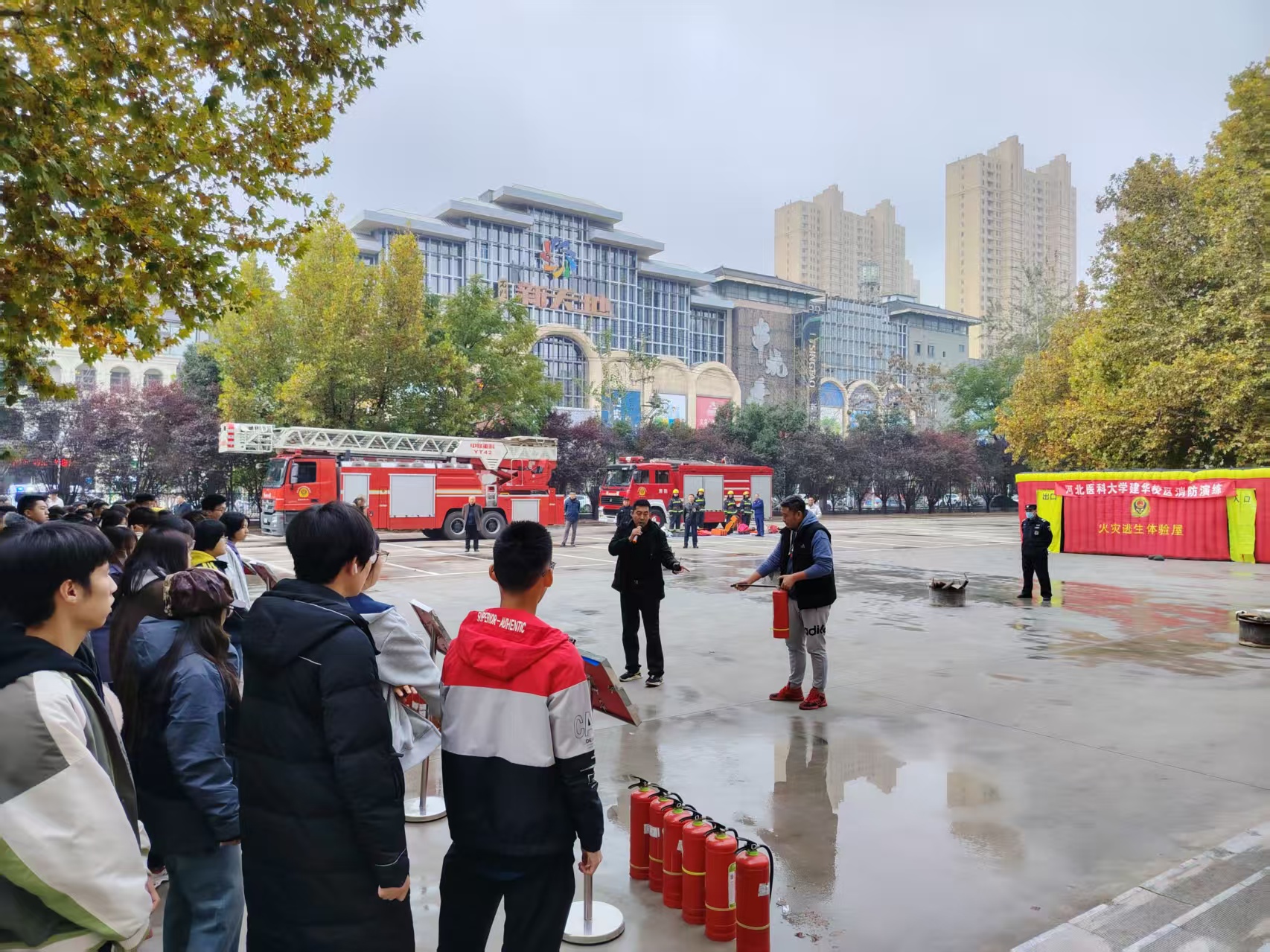 近日,大发快三平台 在博学楼9楼报告厅开展消防知识讲座暨疏散逃生演练活动。本次活动由保卫科承办,特邀石家庄市富强中队、槐北中队现场指导,河北省消防协会王浩教官授课,共380余名师生参加了活动。